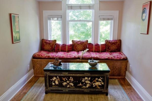 This room features hardwood floors, a private bathroom with a steam shower and a rain shower head, and small sitting area. Extras include a large closet, small refrigerator, and a Tempurpedic mattress.